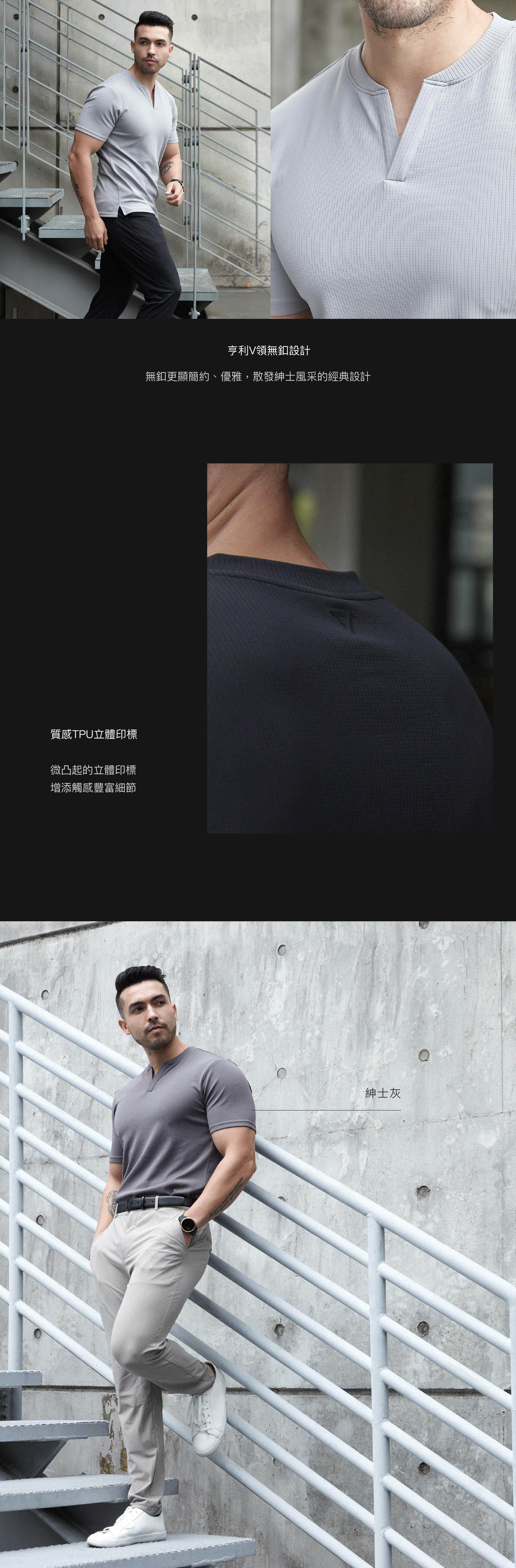 ● 經典優雅的亨利V領,搭上低調奢華的華夫格布料