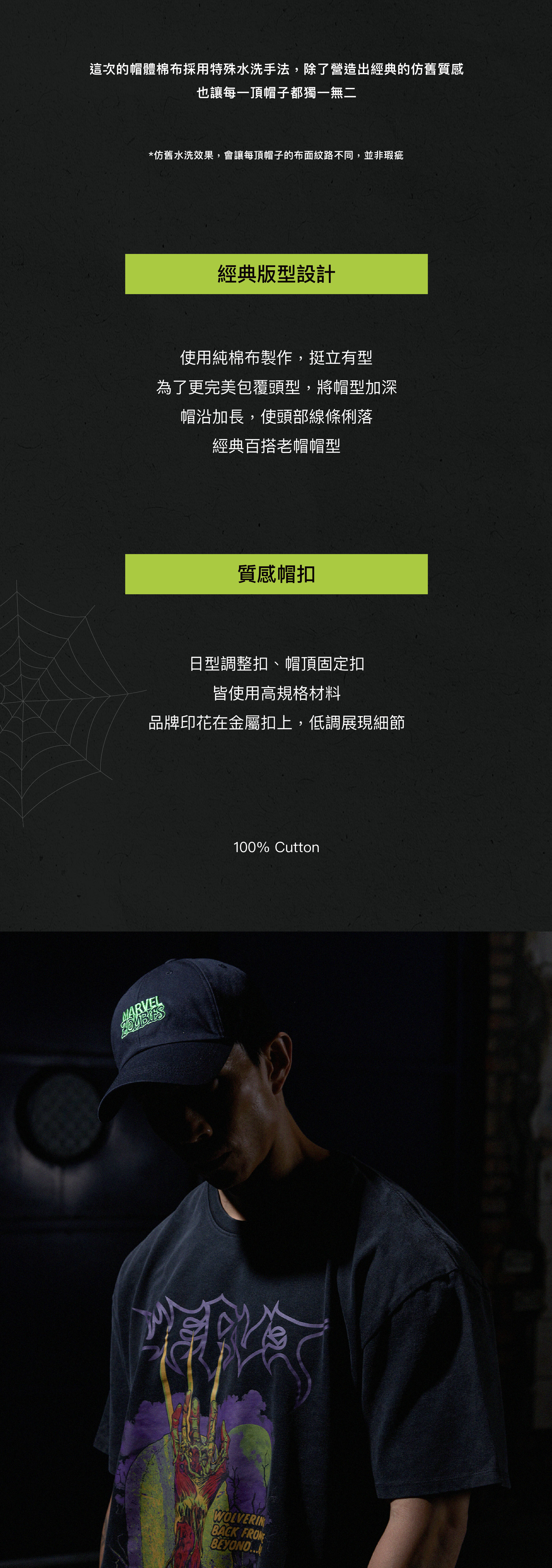 *仿舊水洗效果,會讓每頂帽子的布面紋路不同,並非瑕疵