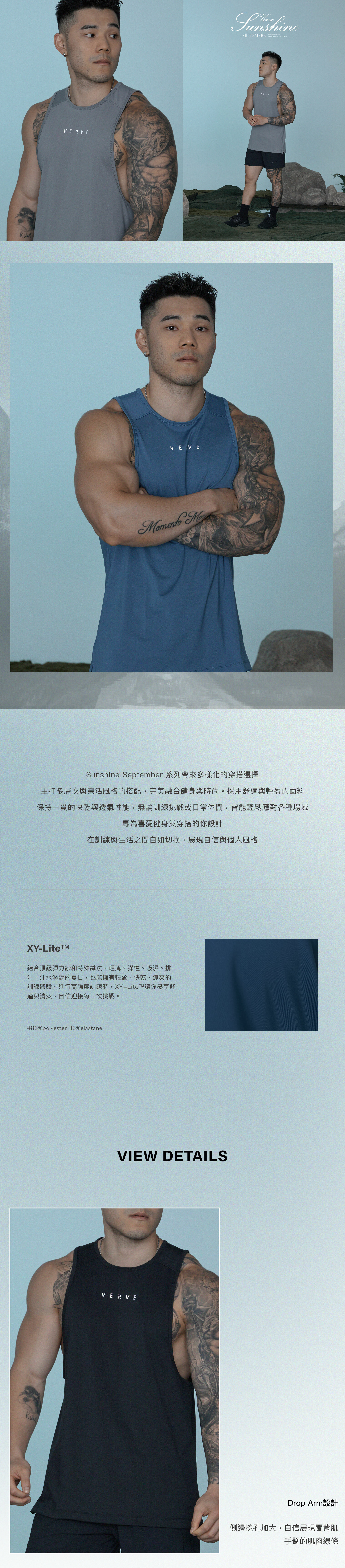 ● 大袖口Drop Arm剪裁,自信展現上臂、闊背肌肉線條